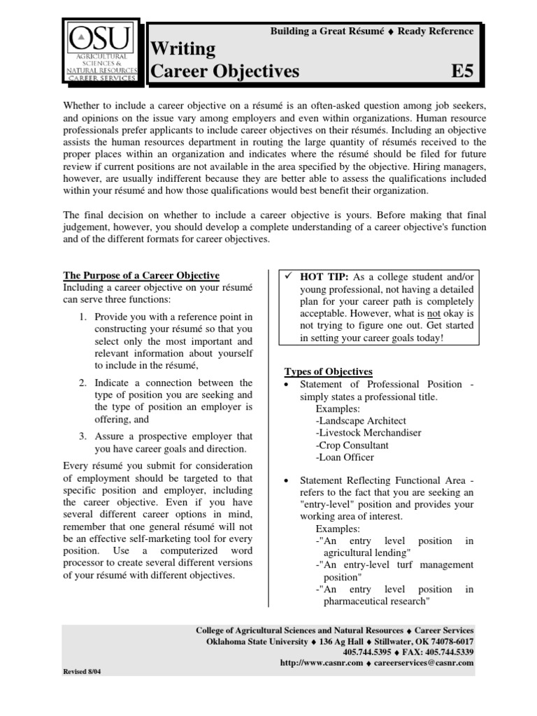 There are many situations where employers like to see an objective statement on the top of the resume. Experienced and accomplished digital marketer with a track record of working with customers to understand and execute on their goals. A resume objective is a short statement that outlines your career direction. In two to five sentences, it outlines your training and skills and any. That is because the objective statement is the first thing that hiring managers. Your career objective should serve as the entrée to a main course, that is, a concise and compelling introduction to your resume which tells employers why they should hire you over anyone else. You should make sure that your sample career objective does not ramble on about your ambitions and wishes as regards your. The quality of your career objective can determine if the recruiter reads the whole of your resume or not, so it's important to make it really captivating when making a resume for seeking a job. When to use a resume objective to stand out from other candidates. Get your career objective statement right with the help of our samples and guide. To figure out what to include in this. Simplifying this, when a person applies for a. Accounting career objective examples 4.